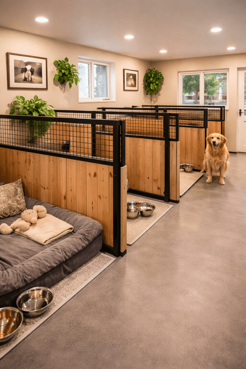 A calm, supervised dog boarding environment focused on safety, comfort, and care.